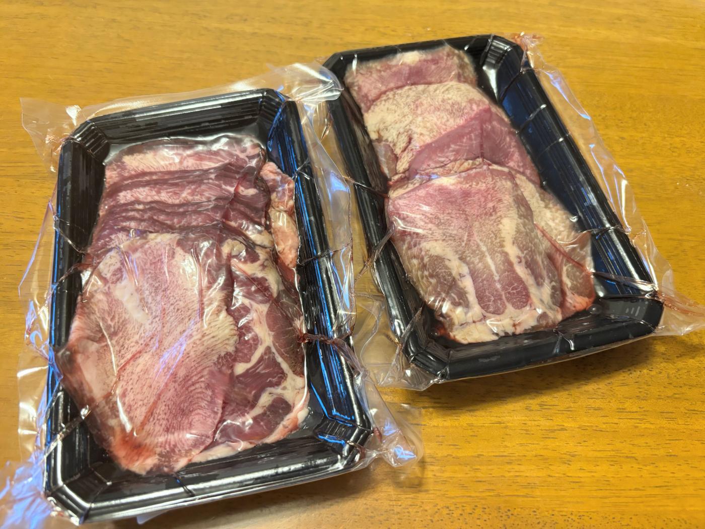初おうち牛タン、上手に焼けるのかな?と少し心配していたところ、丁寧な焼き方のポイントが添えられていて一安心。写真のような真空パックで届きました。