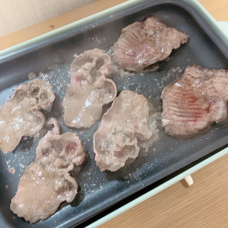 我が家では塩胡椒で軽く味付けしたタンにネギ塩or辛味噌をつけて食べるのがお気に入り🙆♀️お酒もご飯も進みます🍚🍺