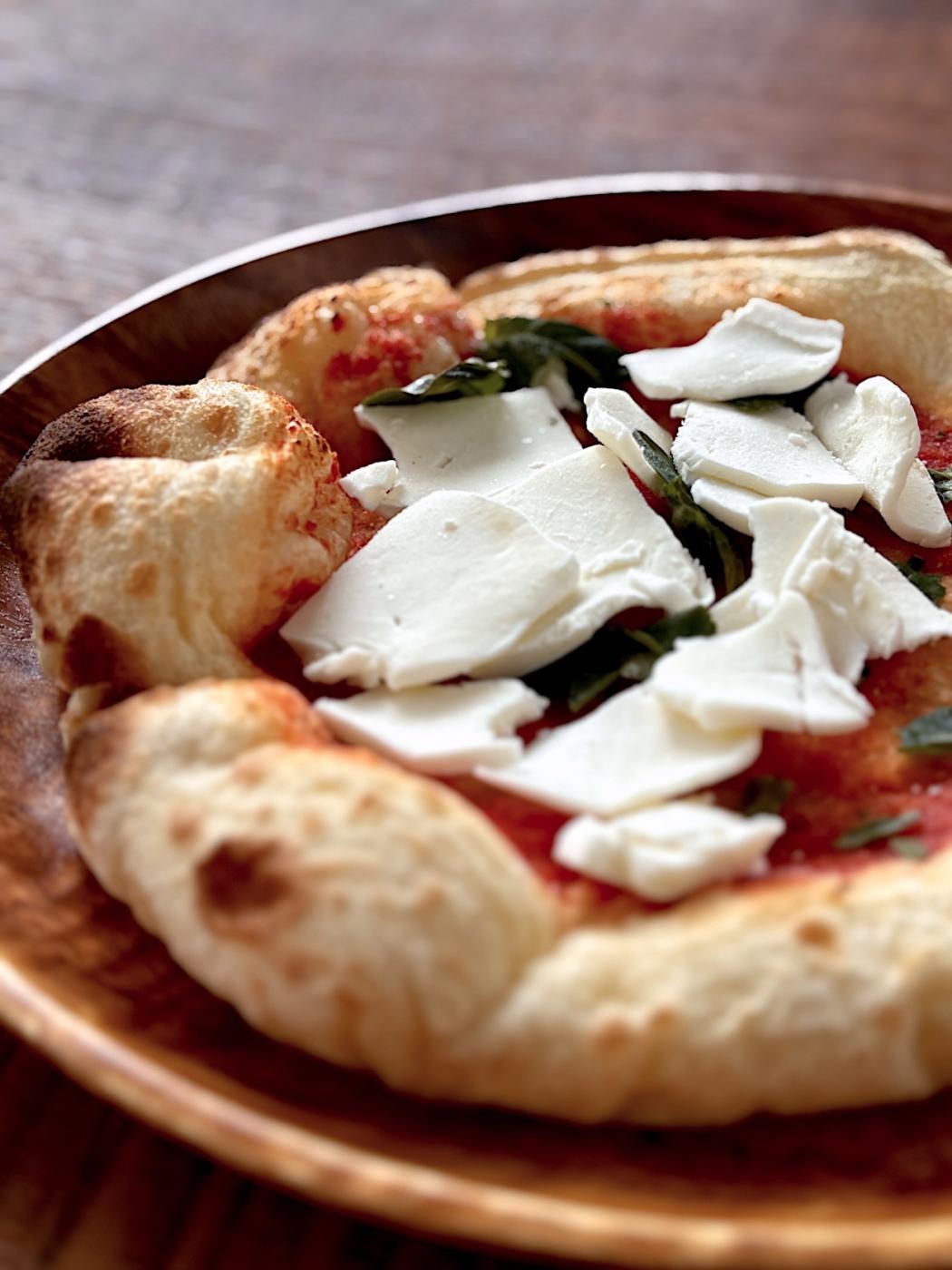 焼き上がりは、ナポリ風の特徴である縁がぷっくりと膨らんで、立派な耳がとっても魅力的です。チーズはトロ〜リととろけて、焦げ目の具合も絶妙。まるでピザ窯で焼いたかのような、食欲をそそるビジュアルです。