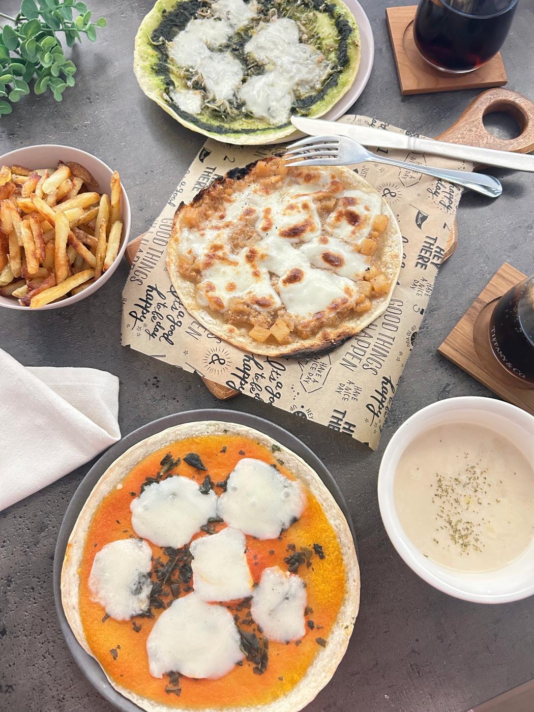 🔥 マルゲリータ & 大葉のピザ → トーストで焼いたよ。