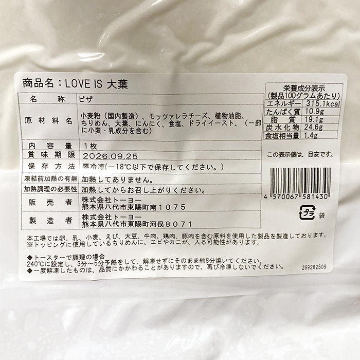 個人的には美味しさも大満足でしたし、熊本県八代産の食材を使用、添加物不使用という点でも好感が持てました。市販品のピザは添加物不使用という商品が少ないのでありがたいです。