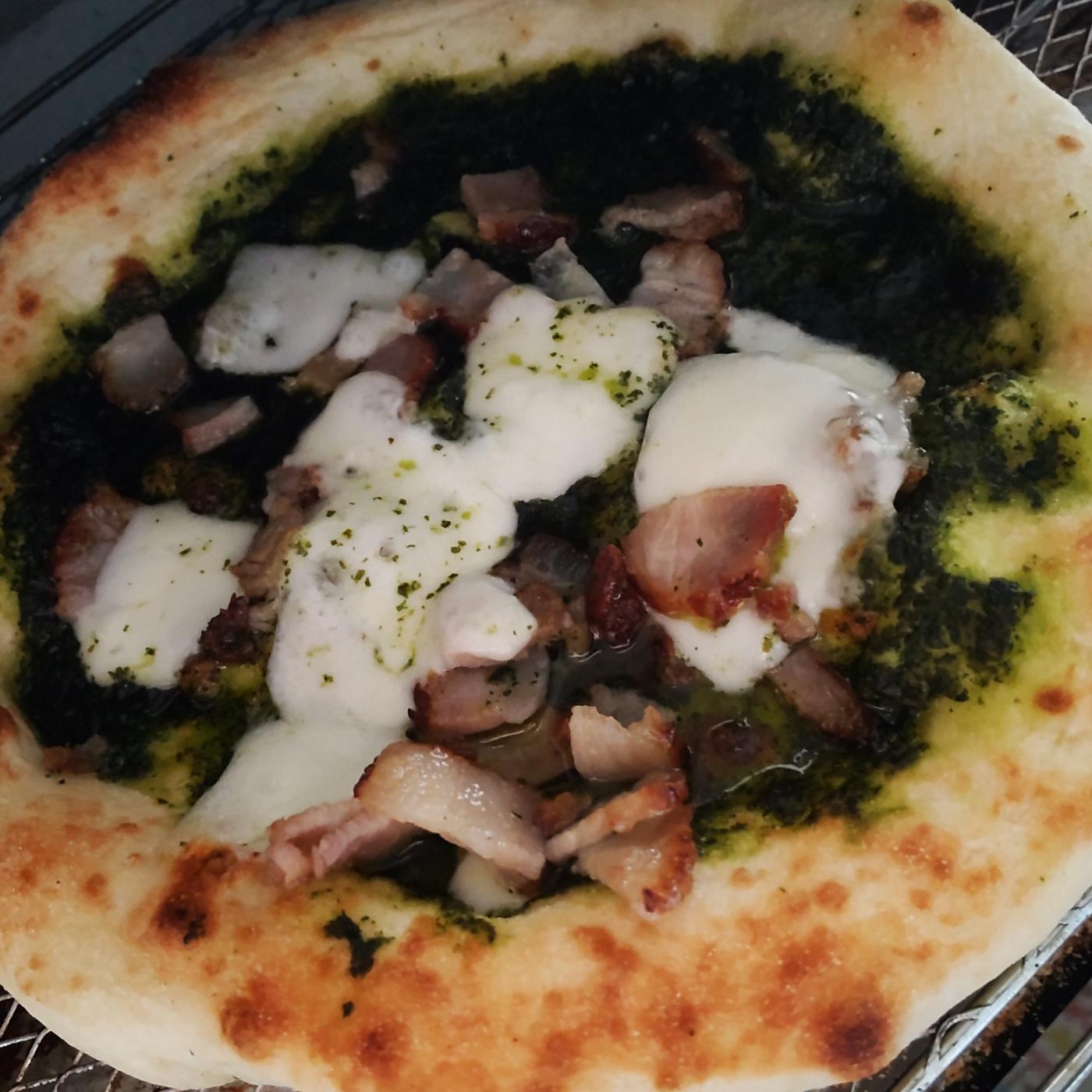 熊本ジェノベーゼは爽やかなバジルと大葉のソースに、自家製ベーコンのうまみがじゅわっ。りんどうポークのコクが感じられて、いっぱい食べたくなる〜🥹