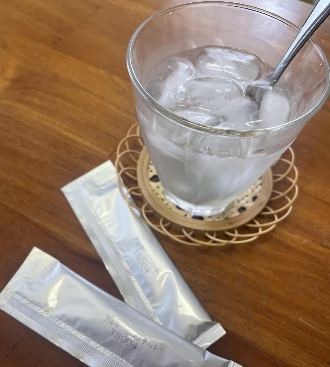 オレンジジュースに入れるとそんなに違和感なく飲む事ができるので、ジュースに入れた方が飲みやすそうです。