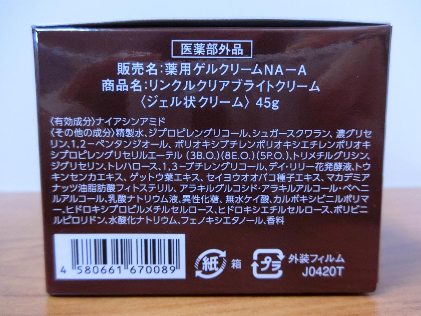 こちらを洗顔後に、使っています。 リンクルクリアブライトクリーム。ナイアシンアミド 配合の薬用ゲ...
