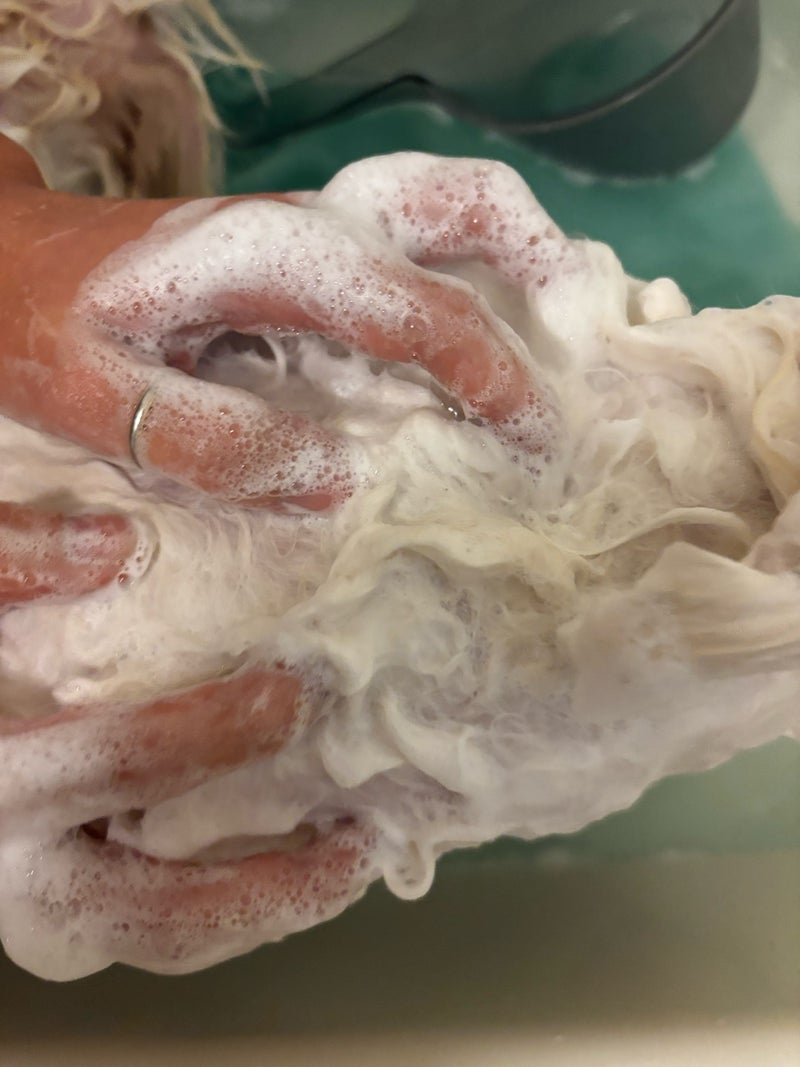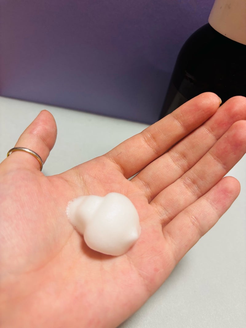 そして、泡がとってもなめらかな感じです。写真にも載せたのですが、軽いというよりクリーミーでなめらかなので、ごっしごしと擦る必要がない感じ。泡タイプって足の洗浄などでは使用経験あるのですが、どうしても水っぽくなり泡が速攻でへたれていくイメージだったのですが、クリーミーで泡がへたれることがない感じです。