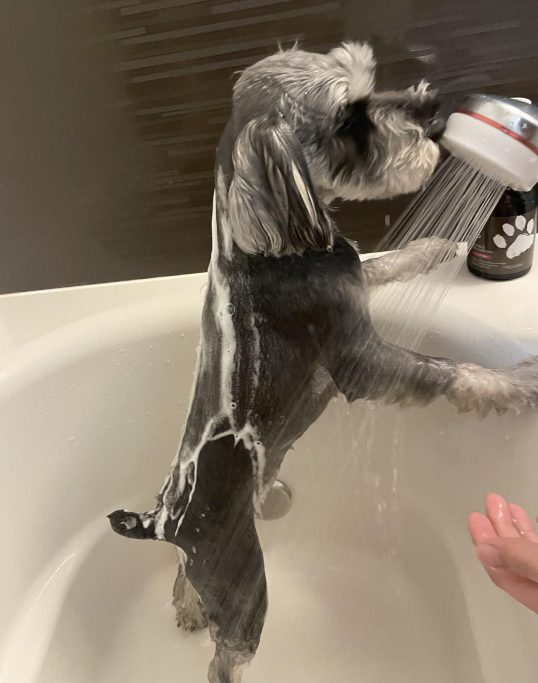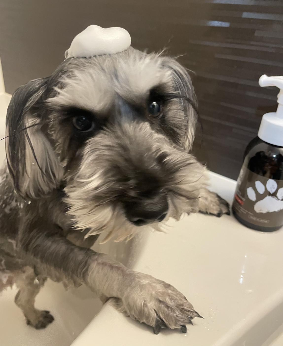 愛犬ミニチュアシュナウザーのみょうがに【慶和シャンプー】を使ってみました🐶