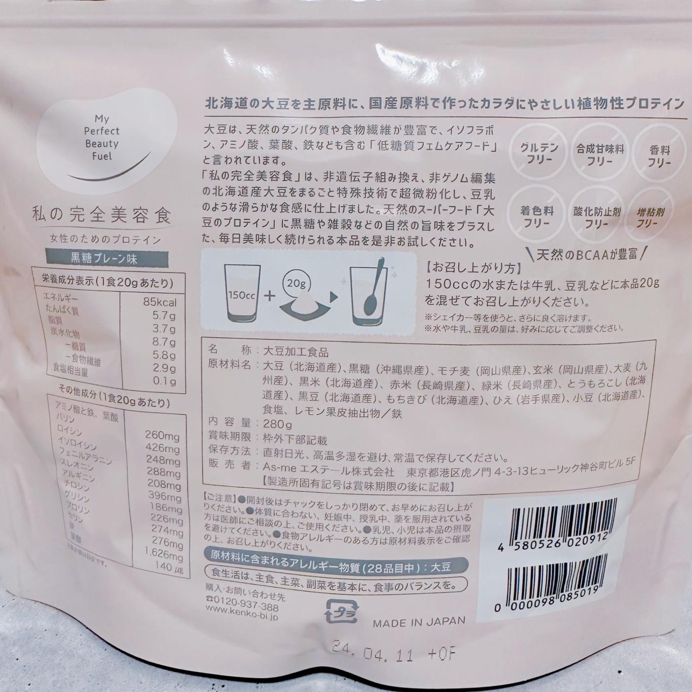 女性のためのプロテイン「私の完全美容食(黒糖プレーン味)280g」🥛