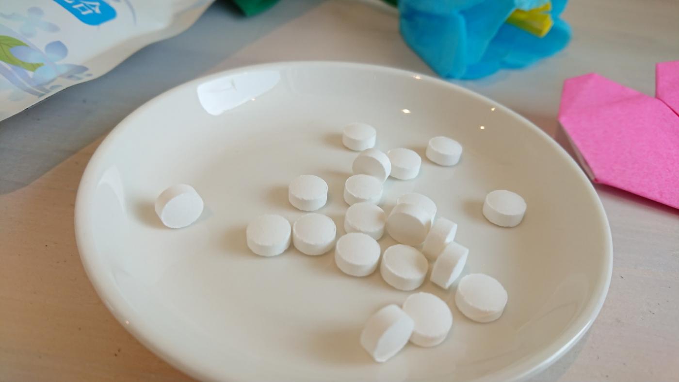 本品は、一日8錠を目安に、食事後に水かぬるま湯で噛まずにいただいていきます。