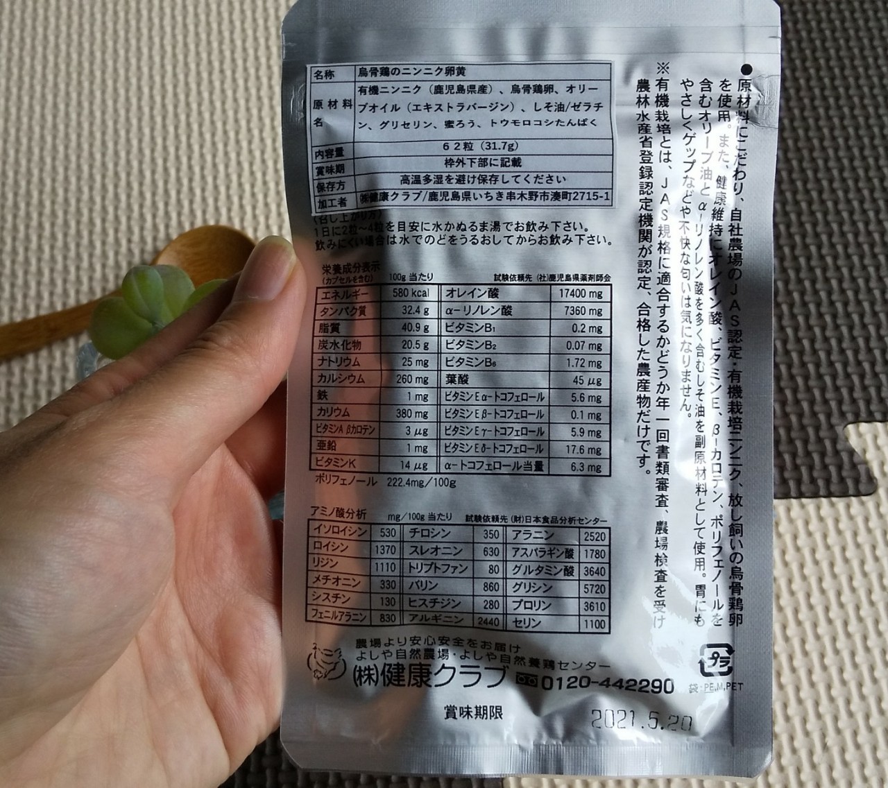烏骨鶏のニンニク卵黄のサプリメントはJAS認定の有機栽培ニンニクと烏骨鶏の卵を使用していて安心ですね...