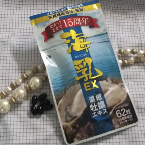 海乳EX 濃縮牡蠣エキスですが、1袋に約155個分の牡蠣がエキスとしてぎゅっと濃縮され、亜鉛をはじめとした12種類以上のミネラル、19種類以上のアミノ酸、6種類以上のビタミンを豊富に含んでいる牡蠣の栄養素を凝縮したサプリメントで亜鉛が豊富に含まれています。