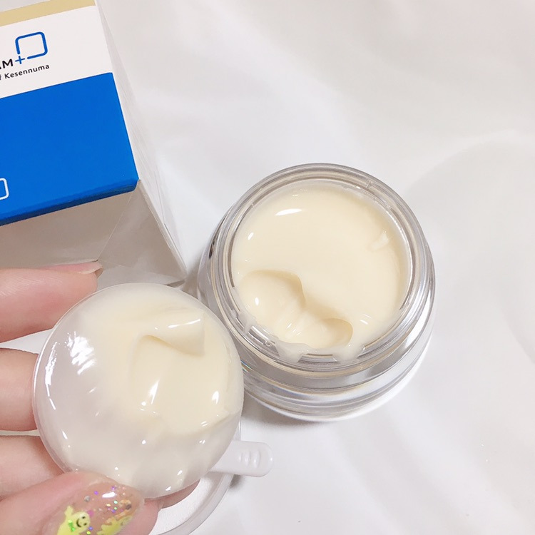 使用方法はこの乳白色のクリームを、化粧水や美容液整えたお肌にパール1粒分のせ、