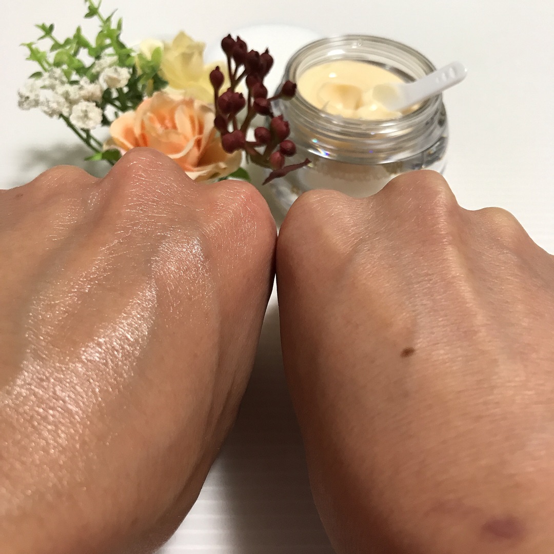 こっくりとしたクリームでお肌に馴染ませるとしっとりします。
