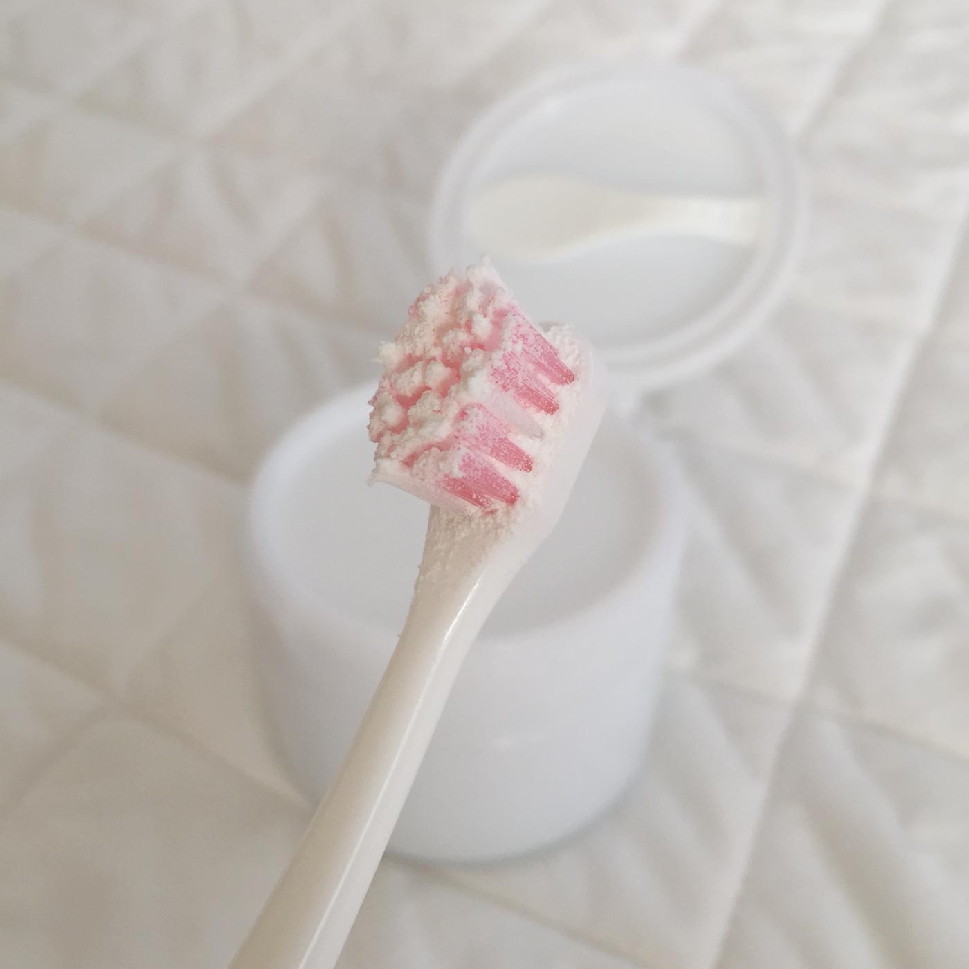 容器は蓋がぱかっと開くタイプ。 蓋をくるくる回すタイプの粉歯磨きを使ったことがあるのですが、地味...