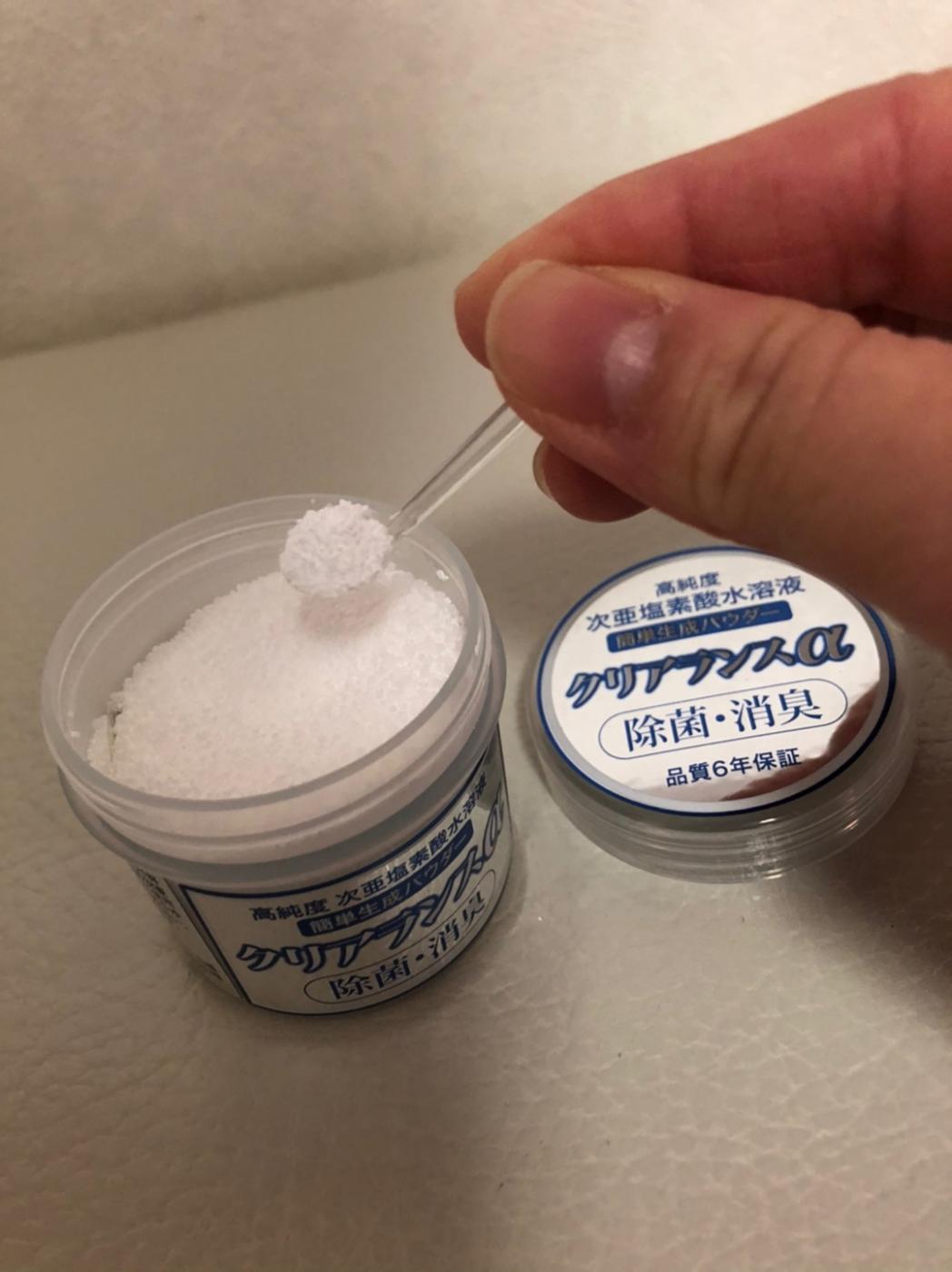 500ccスプレーボトルで、200ppmだと山盛り1杯だけでできます。