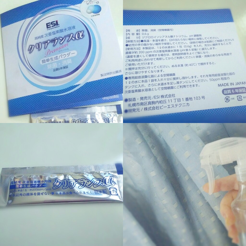 次亜塩素酸水は、長期保存ができないものが多いですがクリアランスαプレミアムなら、水と希釈していないパウダー状態であれば6年間の保存が可能なので、災害時などにそなえた備蓄にもピッタリだなと思います。