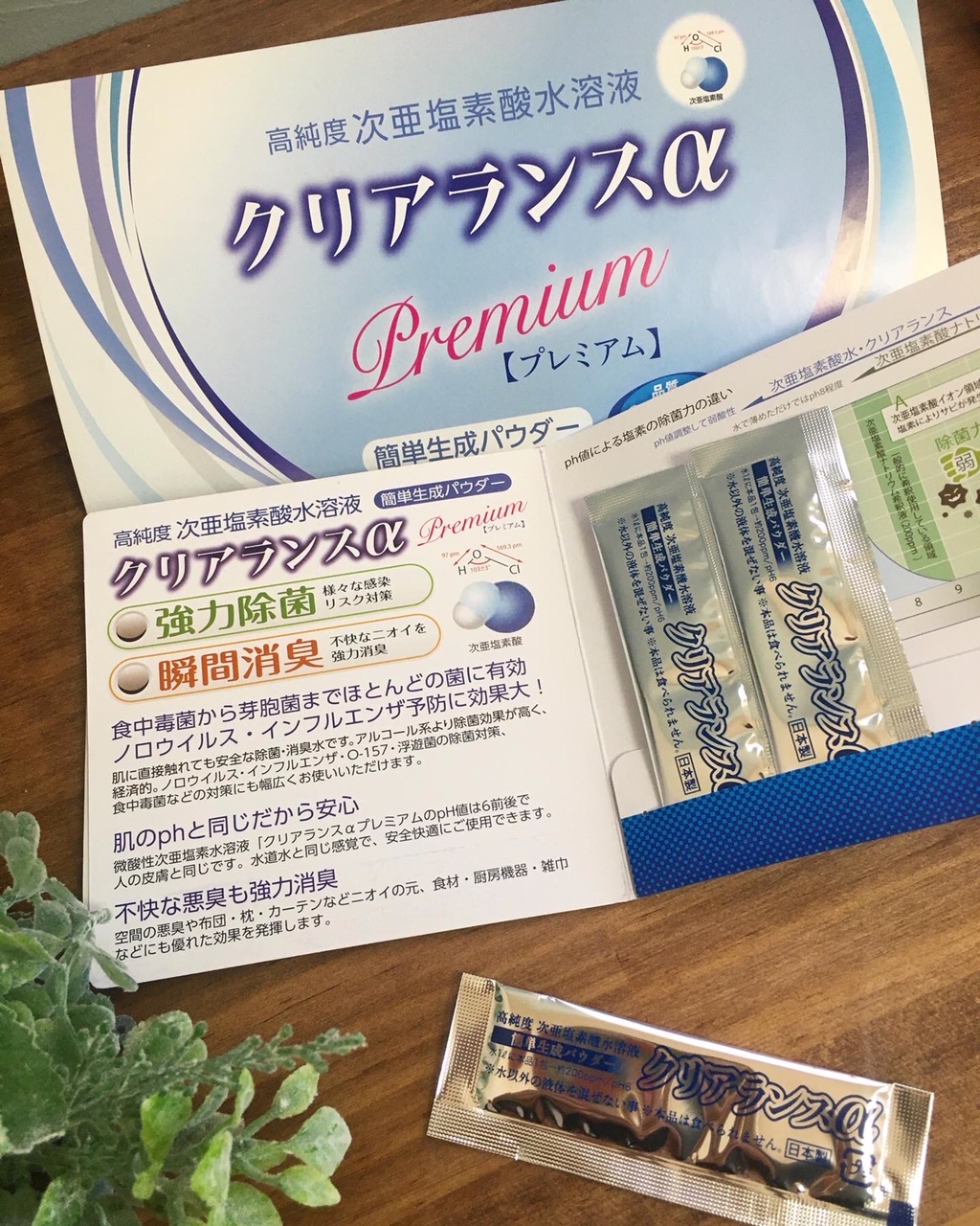こちらは、強力除菌・瞬間消臭に優れた高純度次亜塩素酸水溶液を手軽に作ることができるパウダーです。