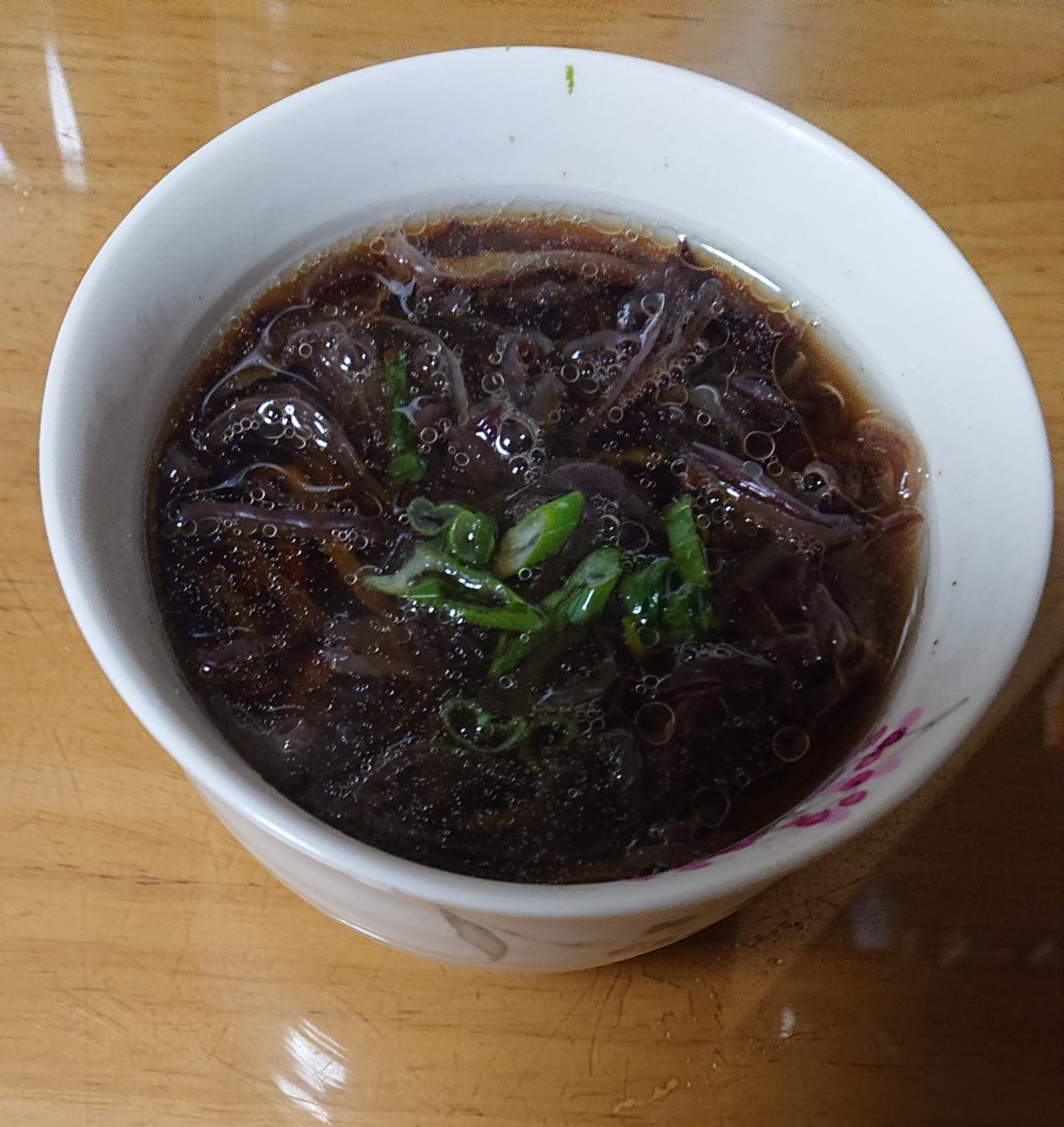 スープをお湯で溶いてその中にきくらげヌードルを入れるだけ‼️