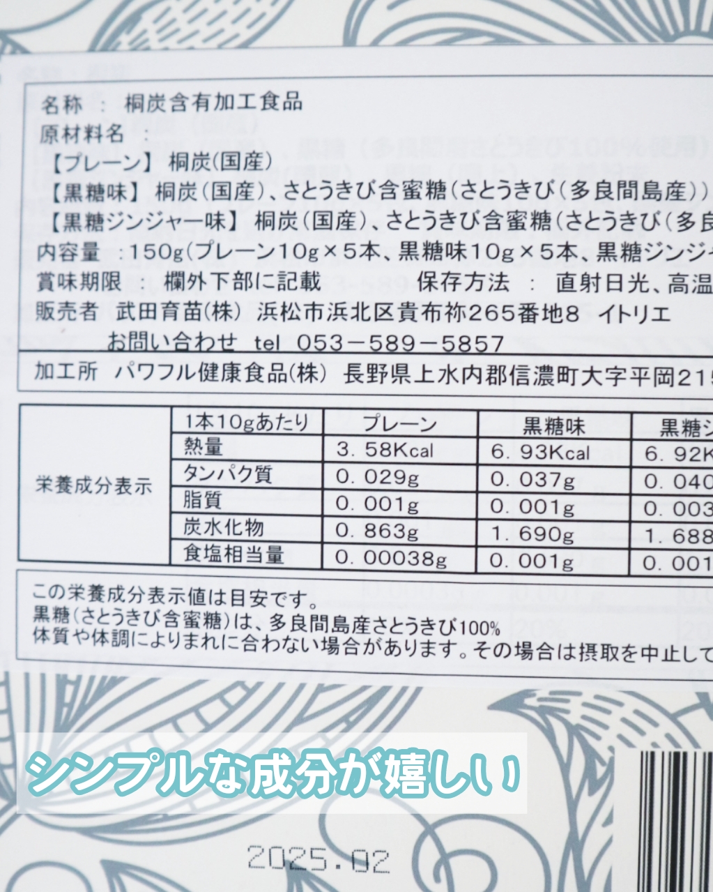 フレーバーは、プレーン、黒糖味、黒糖ジンジャー味の3種類セットになっていて、微粉が飛び散らないように水に封入されています。