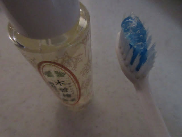 お水で口の中をよく濯ぎ、歯ブラシもよく濡らした後、木曽檜歯磨きジェルを適量付けます。