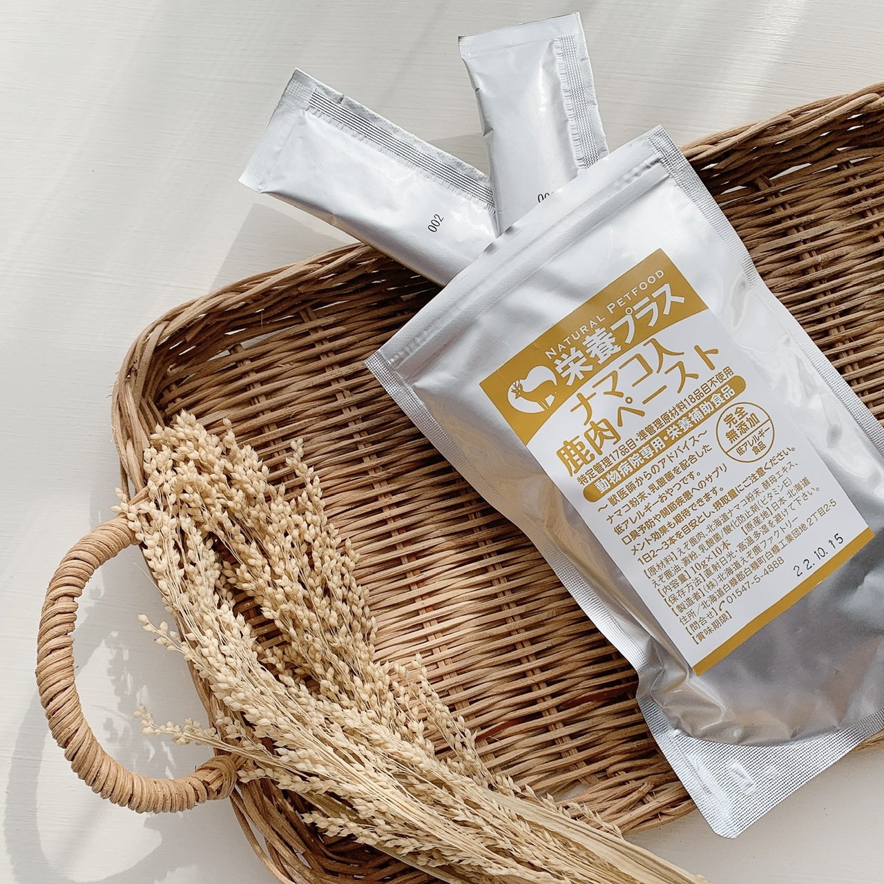 ナマコ粉末、乳酸菌を配合したペースト状の鹿肉です。