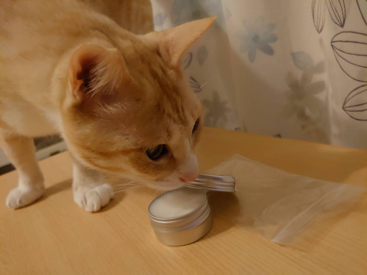 我が家にはマンチカンと猫種はわかりませんがミックスちゃんがいます。クリームを出してみると初めは興味なさそうでしたが、肉球に塗ったら舐めてみるとずっとペロペロと舐めていました。