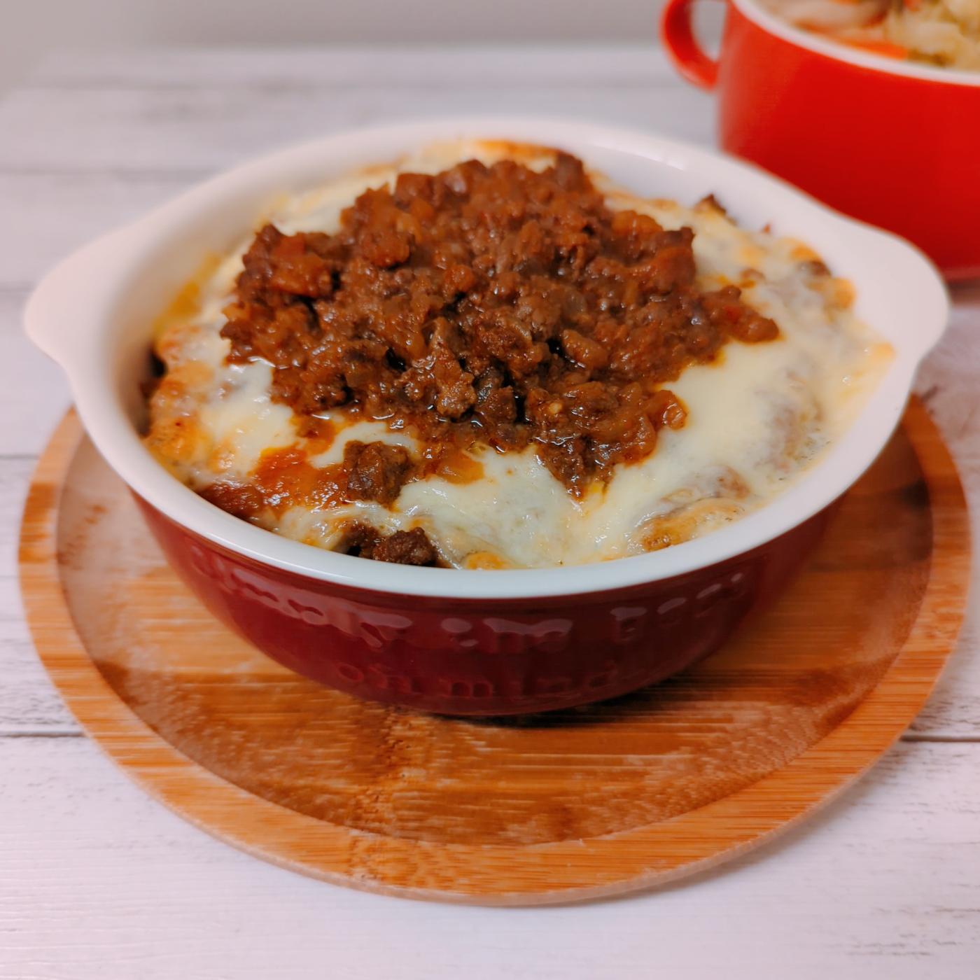 ミートパイは、冷凍パイシートを使って簡単に💗ミートソースの汁気を切って、パイシートで包み焼きます🥧✨