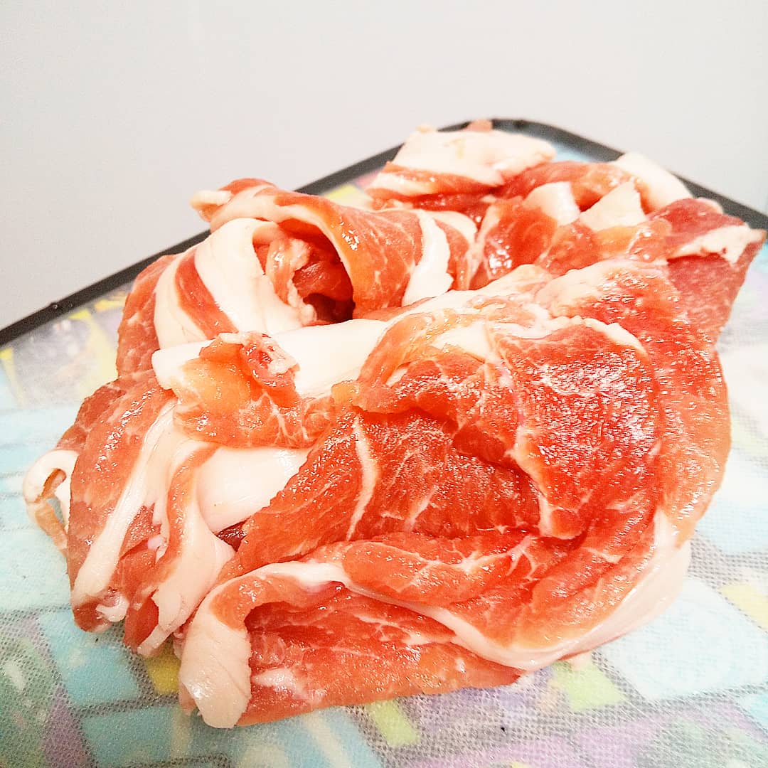 お肉は毎日食べます(๑´ڡ`๑)鶏肉、牛肉、鴨肉などいろいろ食べますが…一番多いのは豚肉ですね!疲労回復に良い豚肉は忙しい夫には必須ですね。山形県の大商金山牧場で米とホエーで育った『米の娘ぶた』のかた肉切り落としです。