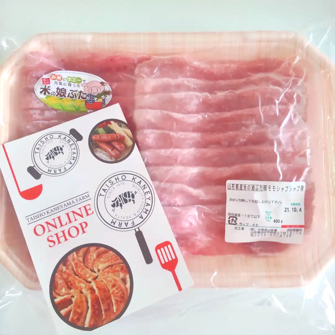 山形県にある株式会社大商金山牧場のブランド豚、米の娘ぶたモモ しゃぶしゃぶ用を頂きました! 米の娘...