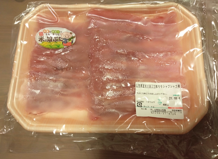 山形県にある株式会社大商金山牧場のブランド豚、米の娘ぶたモモ しゃぶしゃぶ用を頂きました! 米の娘...