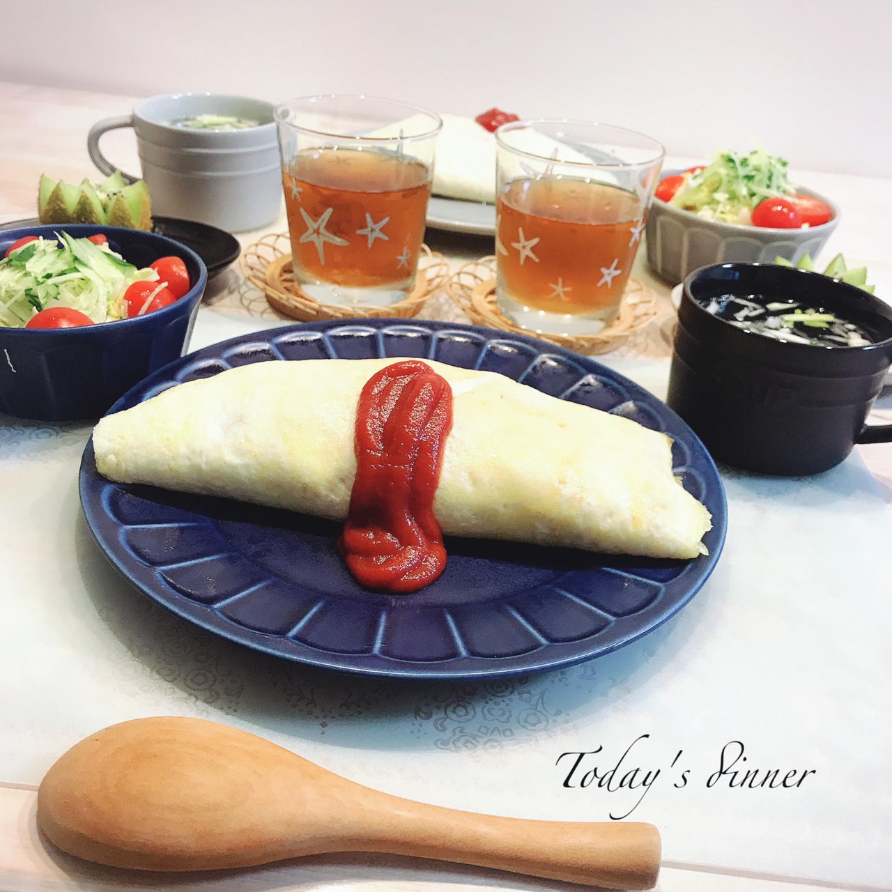 ケチャップライスをのせて綺麗に巻いたら完成です?