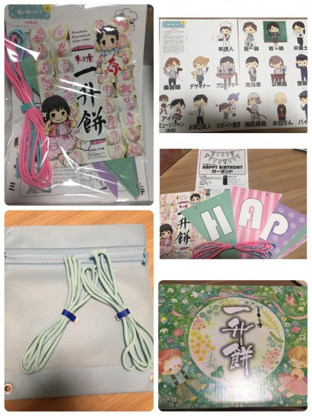 持った感じどっしりと重たいお餅はお祝いにふさわしい大きさです。達筆でお餅に紅白で描いてくださるから尚更嬉しい。子供が産まれてからその子の親にとって子供関係のものをいただくことがとても幸福を感じる瞬間なので、出産祝いや一歳のお誕生日に子供の書やお餅に名前を書いてくださるととても嬉しいし喜ばれるプレゼントとしてとてもいいと思います。それからセレモニーの道具も入ってるから、ハッピーバースデーのポップを飾って自宅で誕生日の写真を撮ることもできます。冷凍で届く餅を常温に戻してから使用することができるので使用する前に解凍する時間を取っておいた方が良いですよ。達筆の書も先生3人から自分の好みの書を書く先生を選べました。