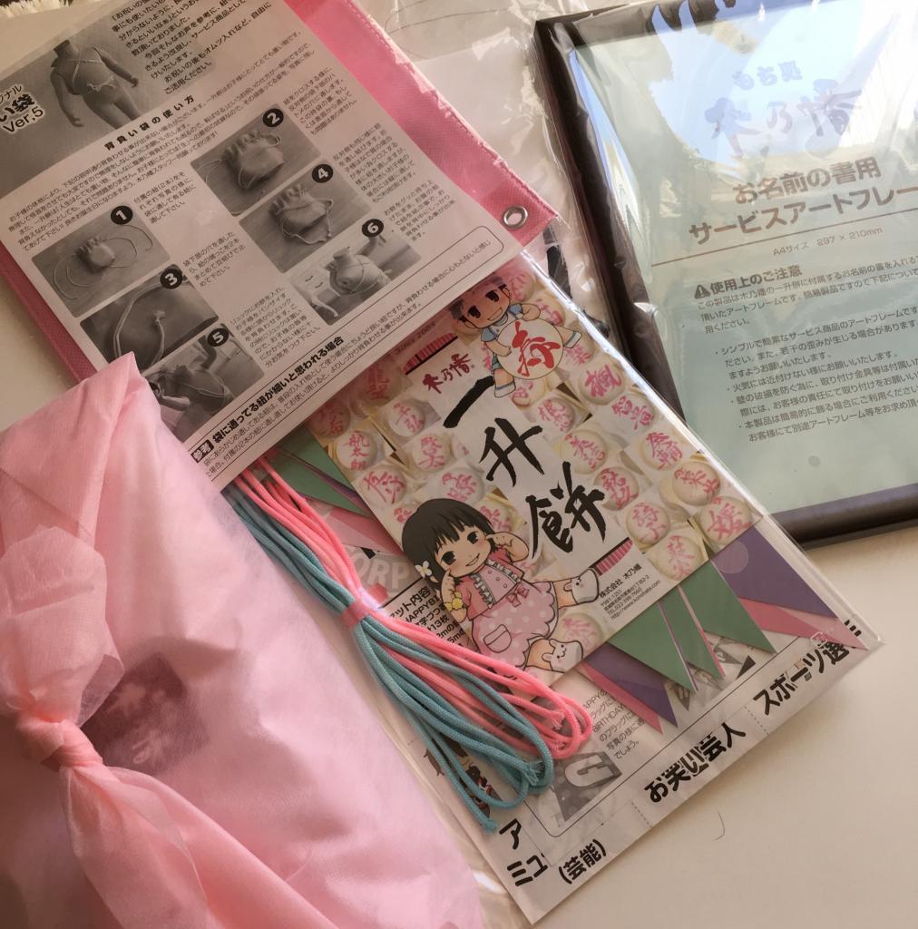 誕生日お祝いらしいフラッグや、職業カード、お餅を入れる風呂敷やリュックなども付いていて、至れり尽くせり感すごいです!笑