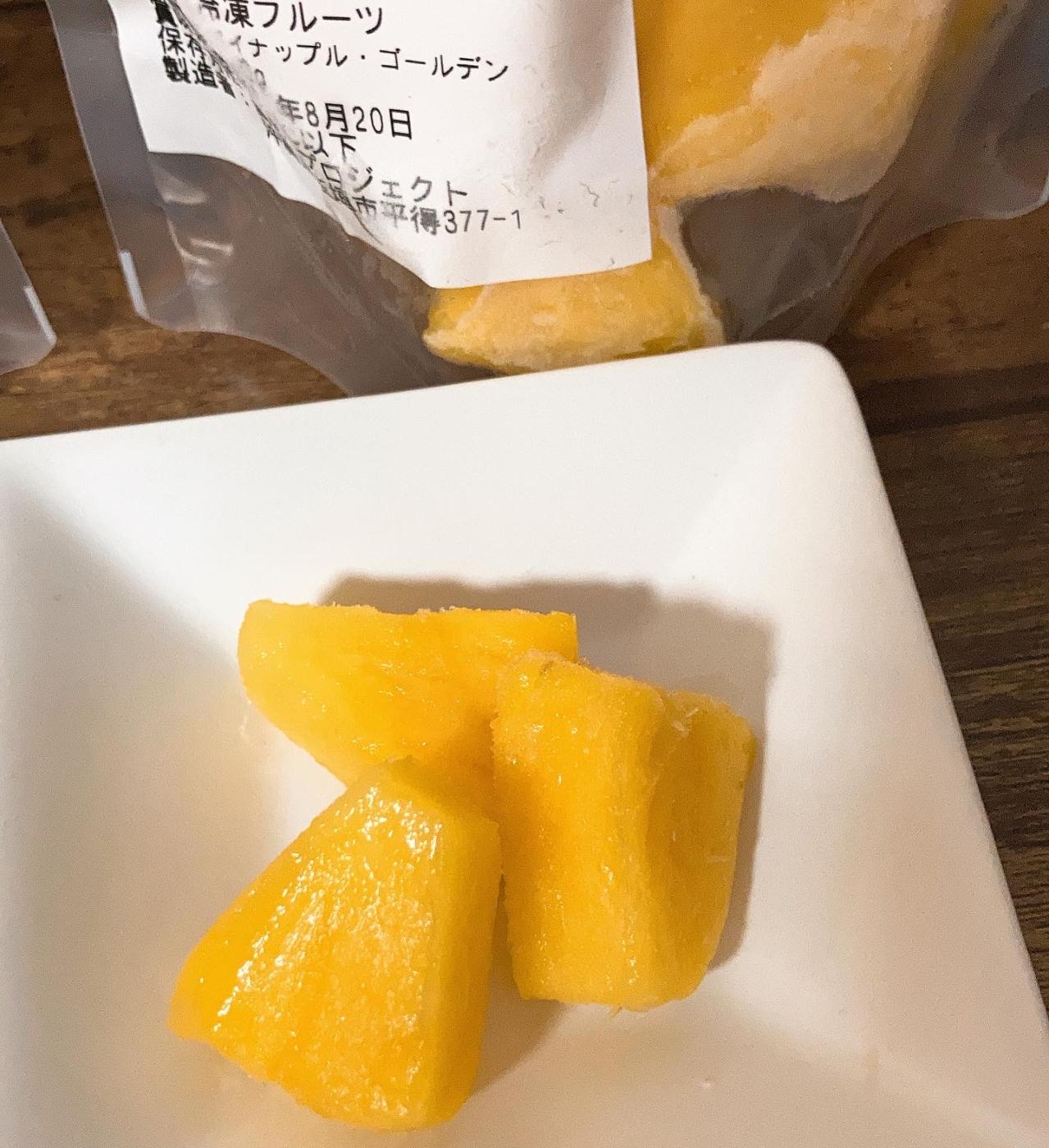新鮮なまま急速冷凍されているので、開けた瞬間にパイナップルの香りが広がりました♬ 解凍してみると、...