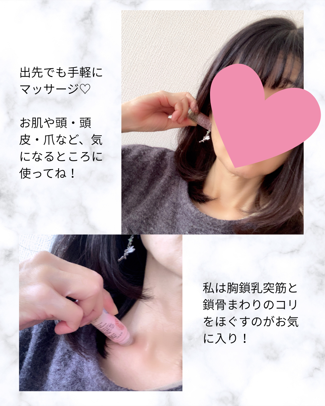 私は胸鎖乳突筋と鎖骨まわりをコロコロするのが定番です(笑)