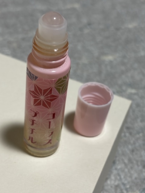 届いた商品はコンパクトで小さめのスティックのりくらいのサイズ感です。和柄が可愛らしく、容器もしっかりしているので初めに感じたのが持ち運びがしやすそう、ということでした。蓋を開けてみると薄いピンクの天然石がはめ込んであり、「美容オイル」と聞いてイメージするような香りはしません。香りがないからこそ持ち運びに便利で、香りが苦手な人でも安心して使えるのではないかと感じました。お風呂上がりのマッサージに早速使ってみます。天然石のコロコロ感が心地よくなんとなく本格的なマッサージをしている気持ちになれますし、オイルもベタつかないでスッと伸びてくれました。このケアならお手軽なので面倒くさがりの私でも続けられそうです。リラックスできる感じがとても良く、1日頑張った自分へのご褒美になった気がしました。
