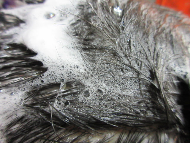 初回はあまり良く泡立ちませんでしたが、この後1回目のシャンプーを致しました。この分量で髪に馴染ませてみましたが、一応髪全体に行き届きました。