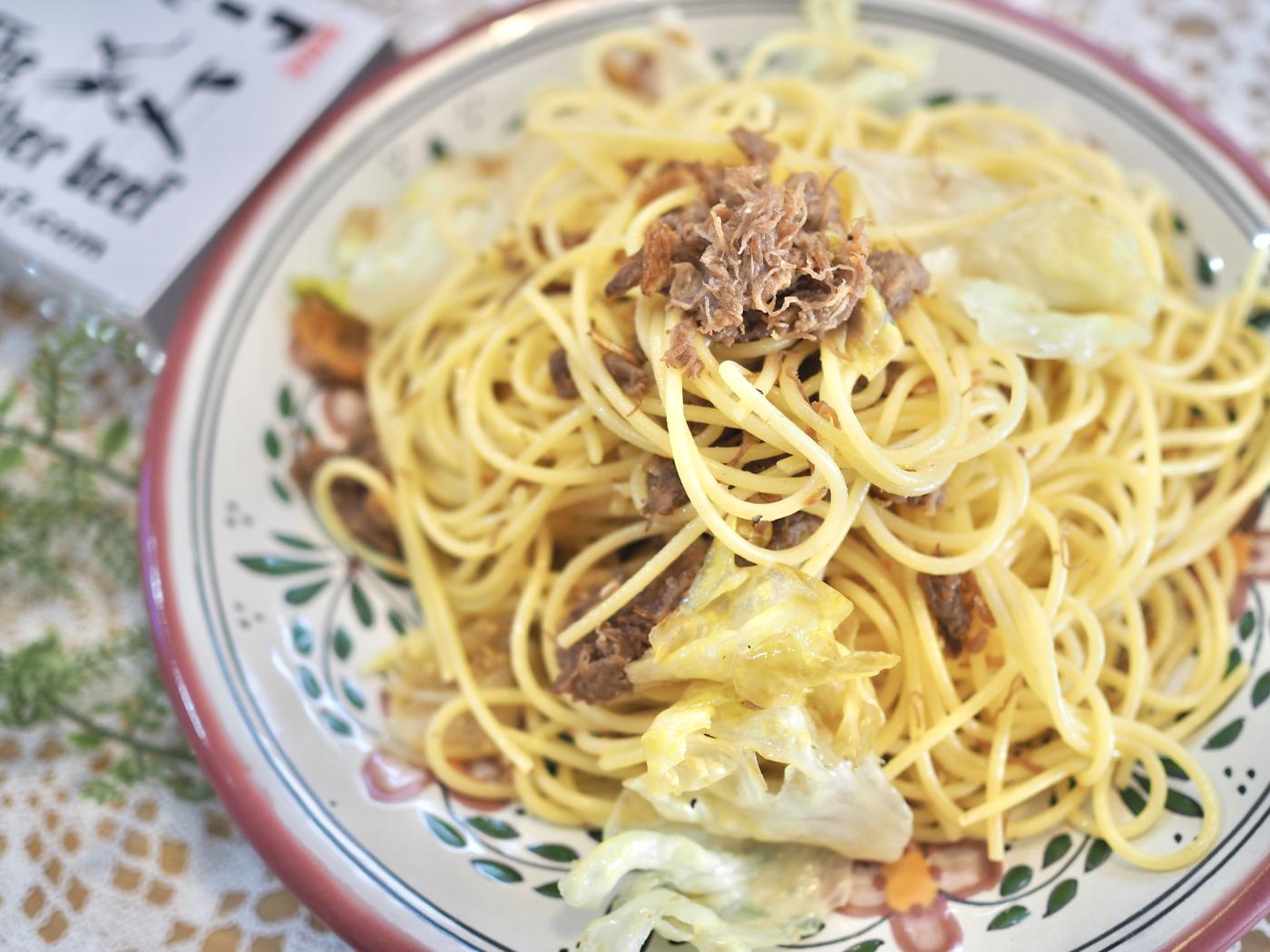 翌日のランチに、オリーブオイルやニンニク、レタスと炒めて、パスタも作ってみました。