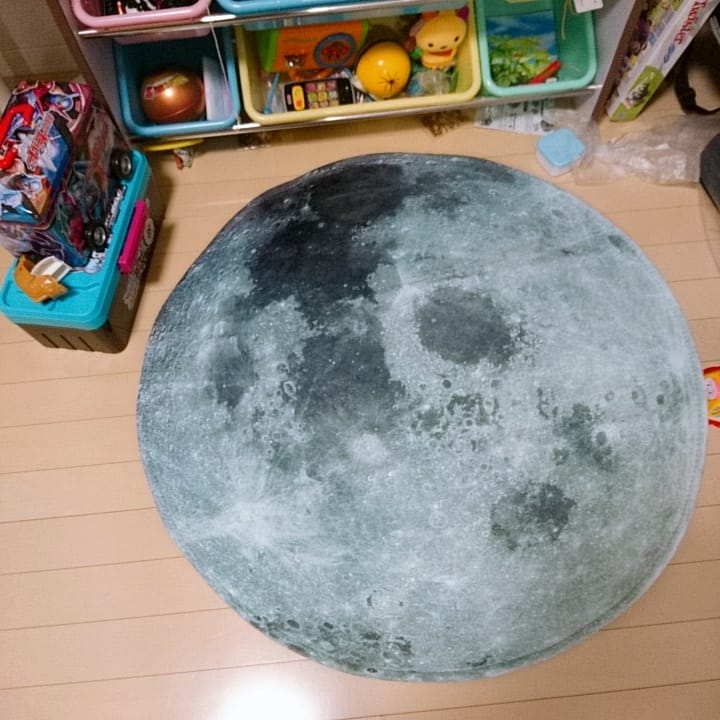 マットがあるー、いい感じ♪と喜んでいました。プラネットリアルプリントラグマットは、裏に滑り止めがついています。