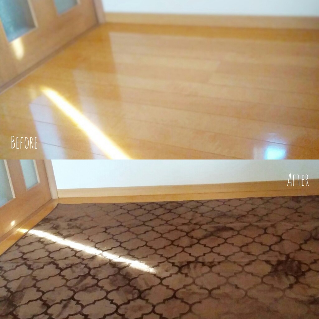 家は数年前に、一部リフォームしたんですが、フローリングにした場所に何も敷かないままいたので、早速、フローリングの所に敷いてみました。