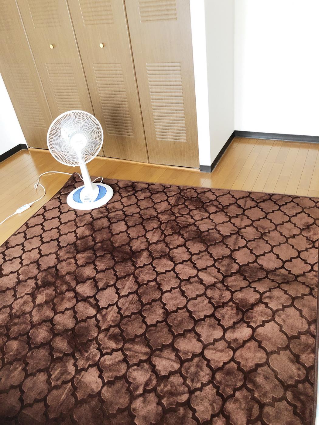 リビングに置く予定でしたが、思っていた以上に大きかった(185×185)ので、ひとまず寝室で敷いてみました。