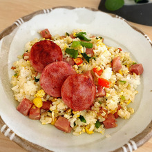 チャーハンに結構な量の雲仙ハムを入れ、