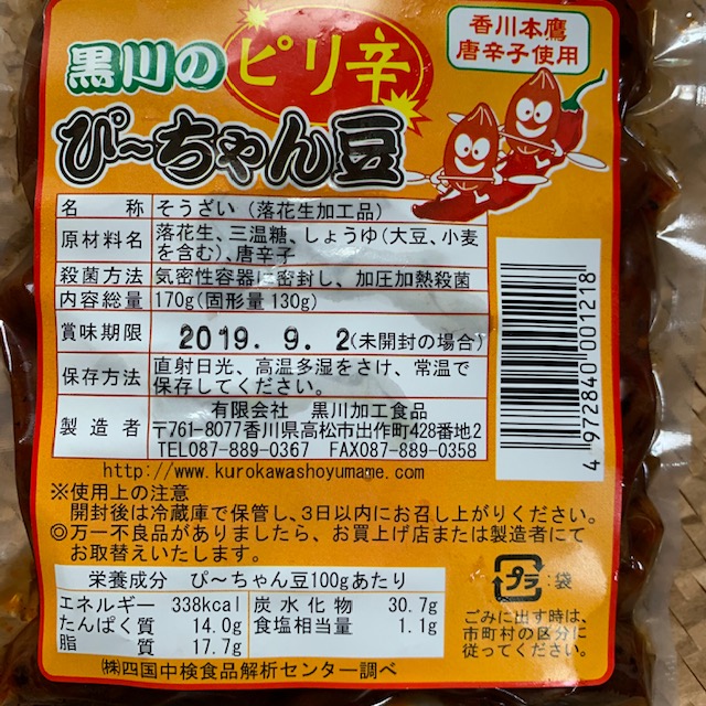 密かにハマっている、黒川のぴ~ちゃん豆。