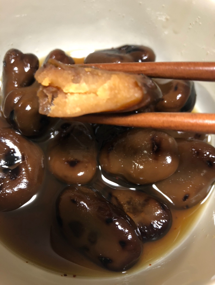 味は…甘かったです。しょうゆで調味されてるので濃い味かと思いきや甘くて少しびっくりしました。優しい甘さ、でも、あんこのような甘さではないほっこりした甘さで、かつ、歯ごたえもある豆が美味しかったです。