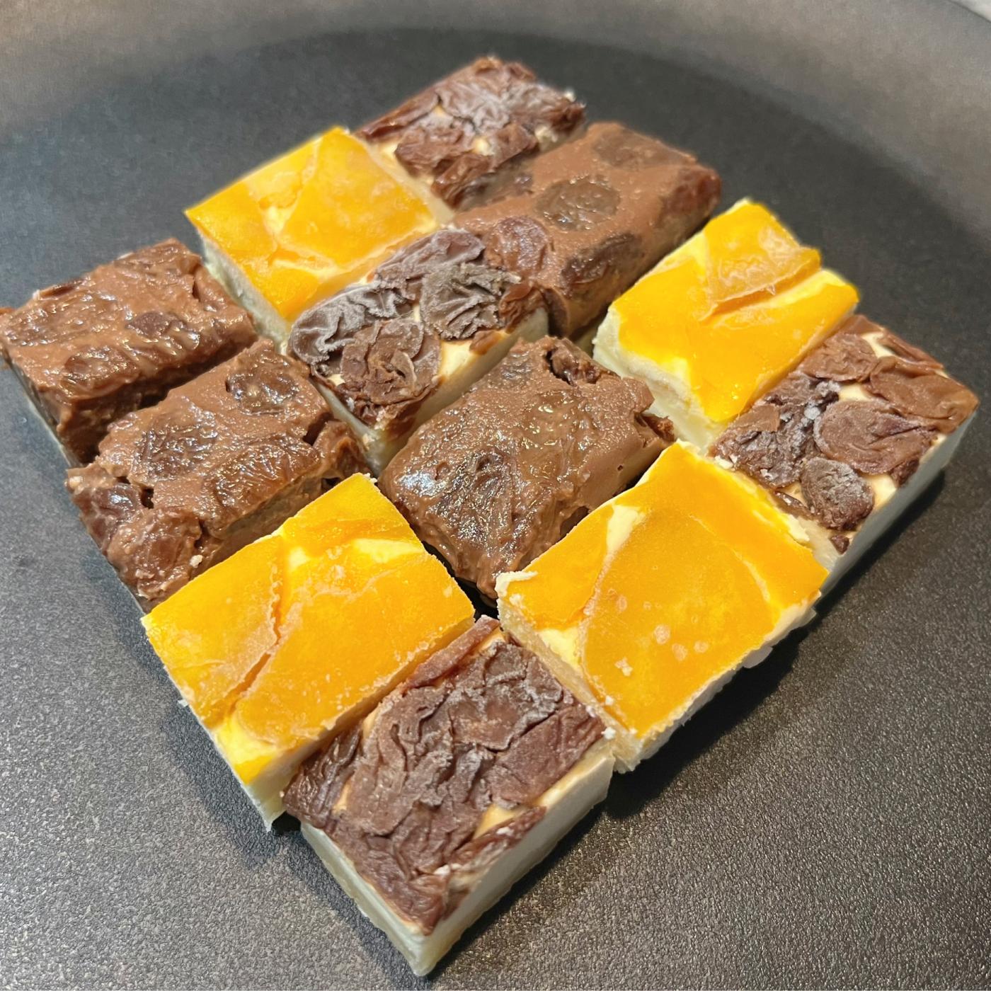 そのままパクっと食べてもいいですが、キューブ型に切り分けて並べ、皆でシェアしながら味わうことをお勧め致します♪