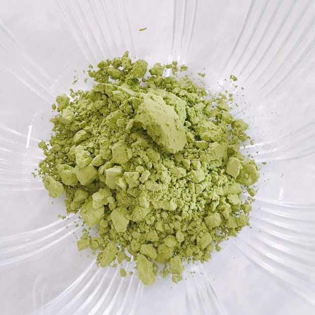 鮮やかな緑色の粉は、水にも溶かす事ができます。少量の水で溶いてからお茶を作ると、ダマになりにくいとか。