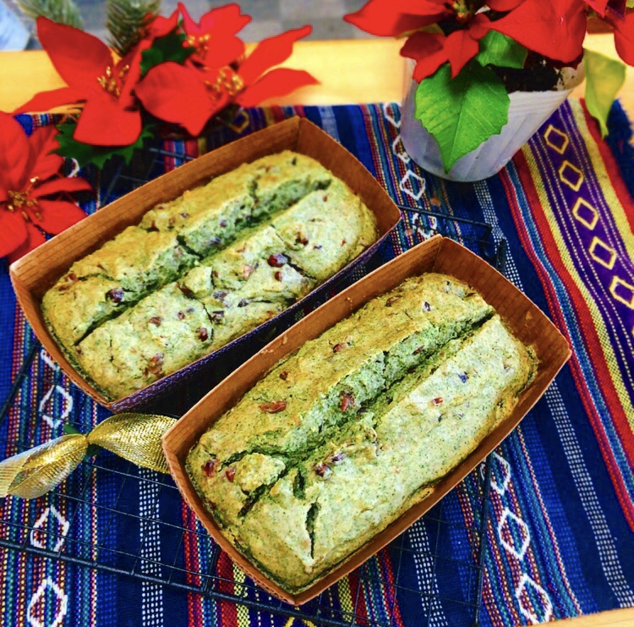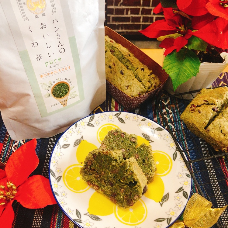 お茶だけではもったいないなと思い、茶葉をミキサーで粉砕して小豆と一緒に練り込み和テイストのパウンドケーキも作りました!