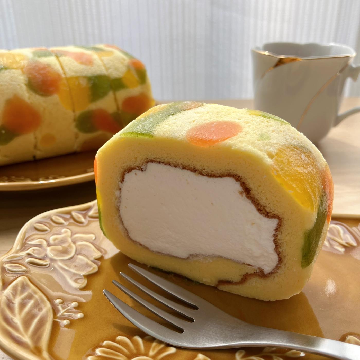 おやつは京都錦ろーる🧁 みてみて、めちゃくちゃ可愛くない? こんなカラフルなロールケーキ見た事な...