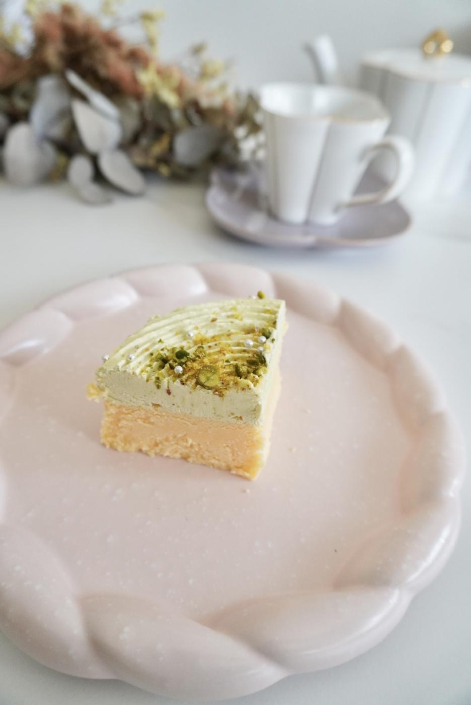 口に入れると濃厚なチーズケーキとふわっと香るピスタチオがマッチして最高の味わい。