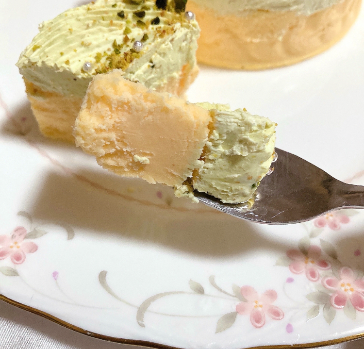 冷蔵庫で解凍してから食べると、よりクリームチーズとサワークリームの濃厚さを感じられました。隠しスポンジケーキがとろけるようなふんわり食感になってとっても美味しい!
