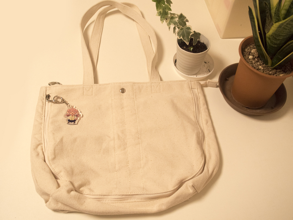 ファスナーを閉めると「普通のバッグ」、開けると「痛バッグ」の